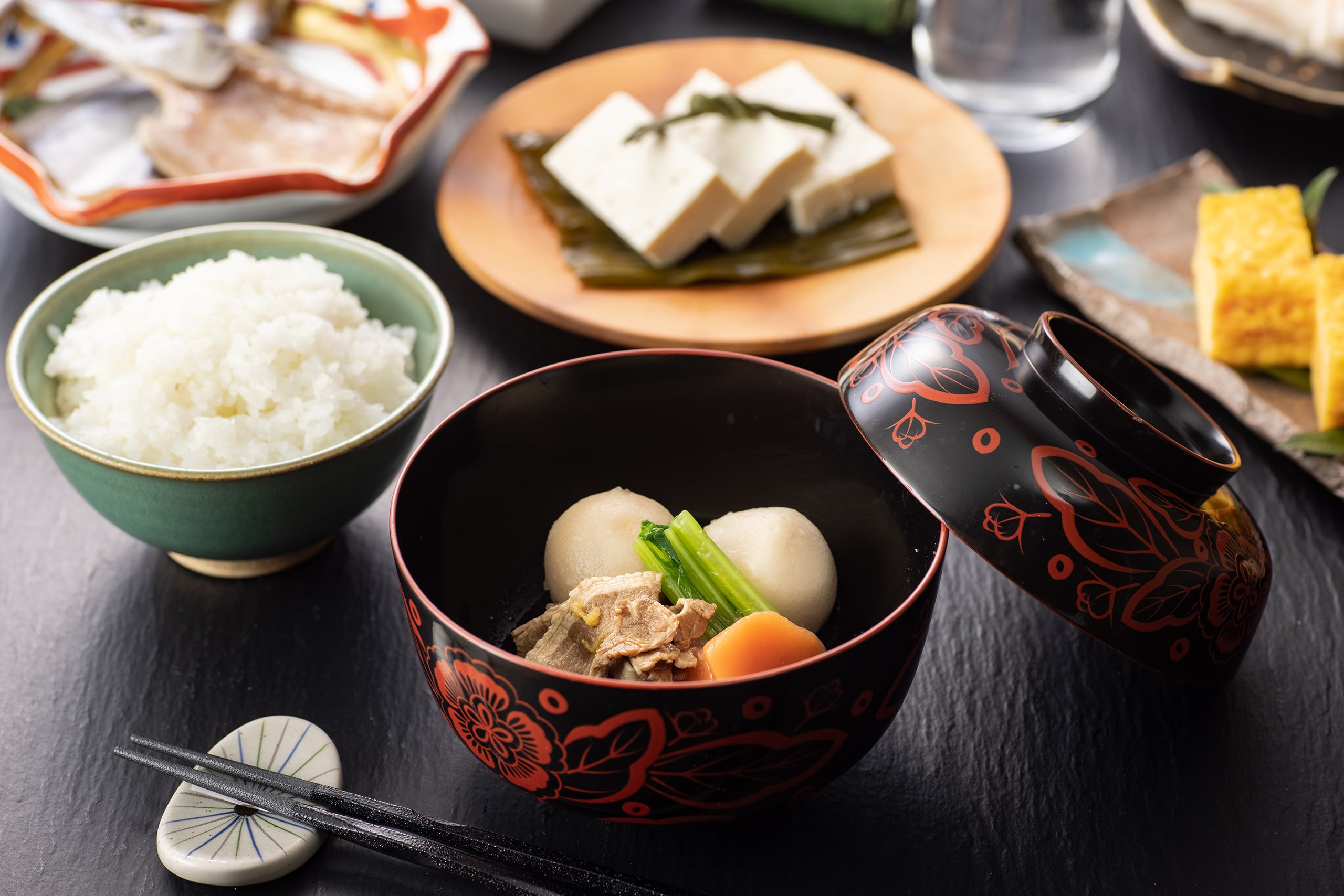富山県内では南砺市と上市町が里芋の主な産地で、特に南砺市は歴史が古く、山野地区では1660年頃から、焼野地区では1720年から栽培が始まったとされています。両地区では、豊富な用水と優れた水はけを持つ土壌で、特有の粘り強さと柔らかさと甘みを持つ里芋を成育。豚バラとともに秋冬の味覚をお楽しみください。